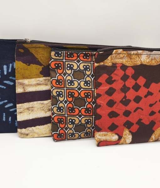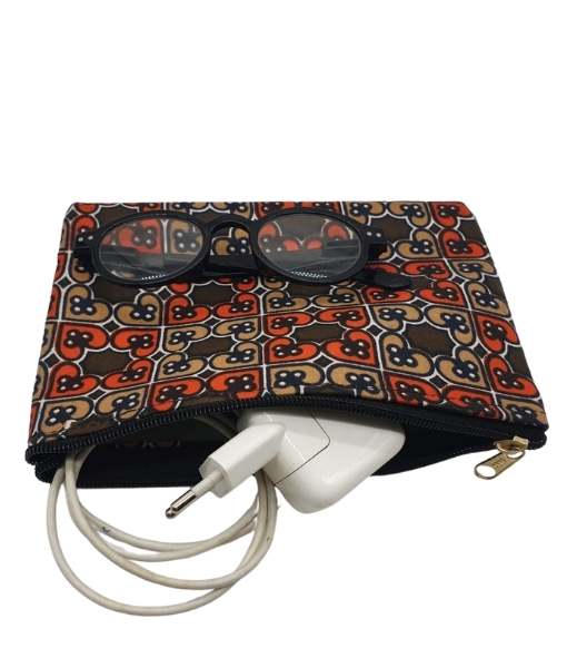 Pochette en wax made in Bénin. Parfaite dans le sac pour y glisser les accessoires, le maquillage ou les stylos et carnets. Elle se lave en machine ( 100% coton)