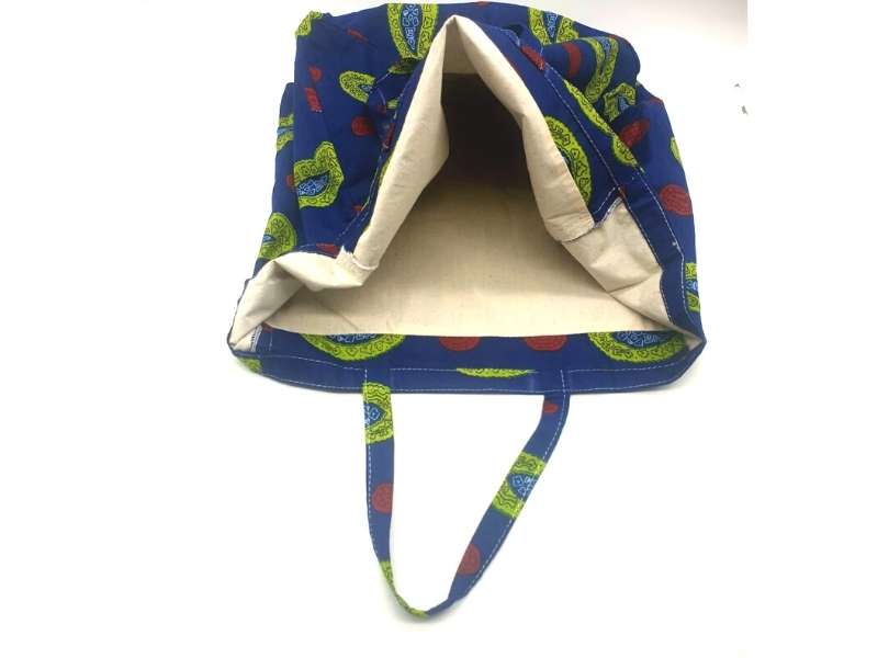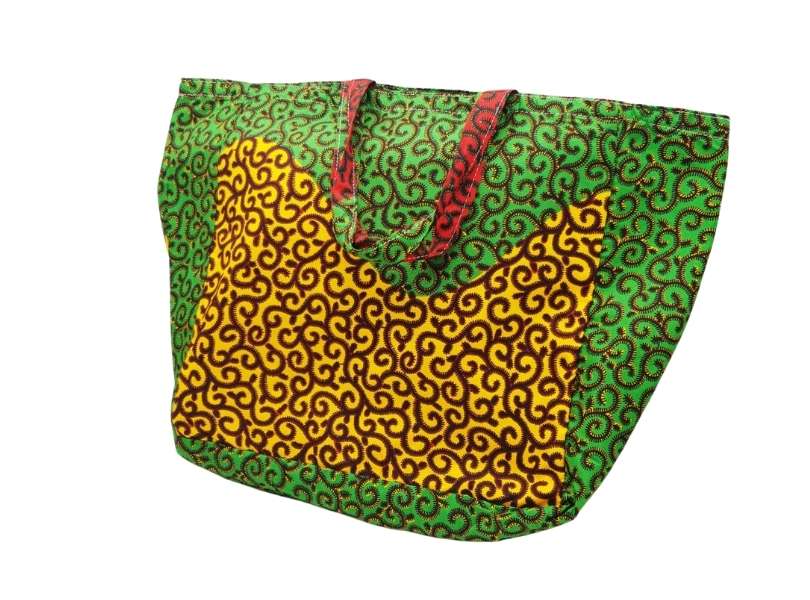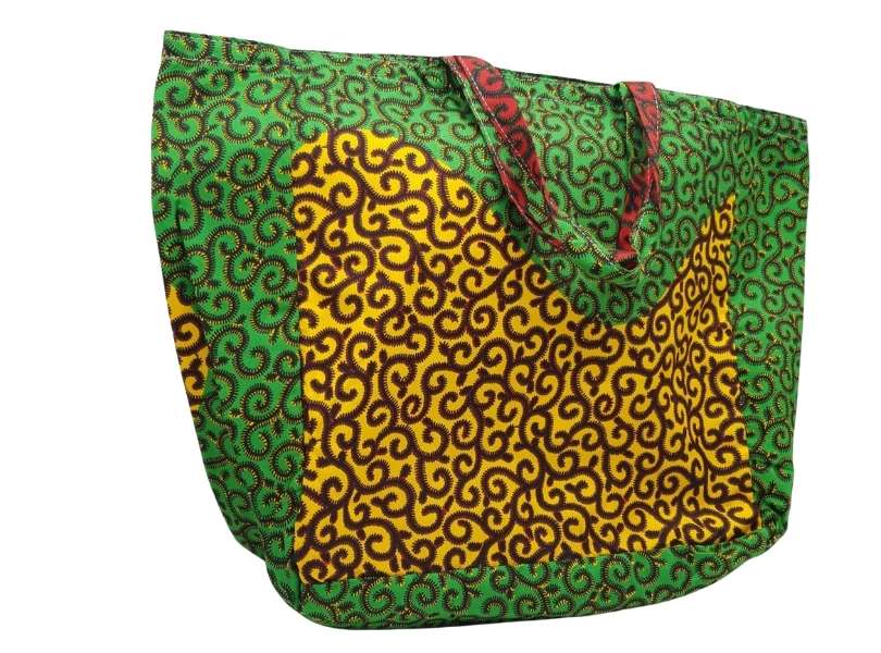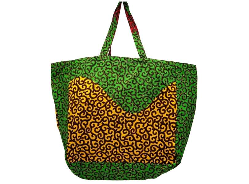 Tote Bag en wax grand modéle made in Bénin. Tote bag idéal en toute occasion, il se plie facilement et se lave en machine. Il se porte aussi bien à la ville, à la plage ou pour faire les courses.