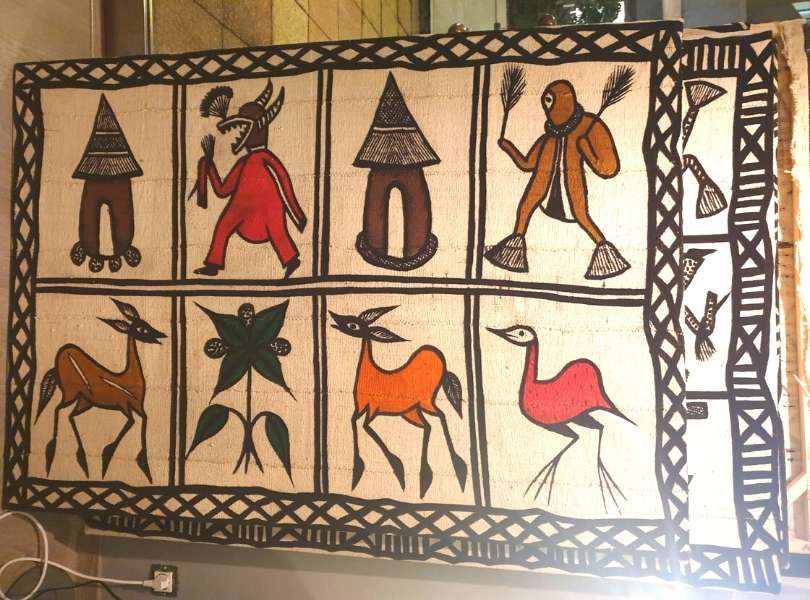Les toiles de Korhogo, du nord de la Côte d’Ivoire, sont comme les bogolans des tissus à bandes blanches tissées au métier puis cousues ensemble. Elles sont ensuite teintées à la main avec des motifs de fétiches traditionnels.